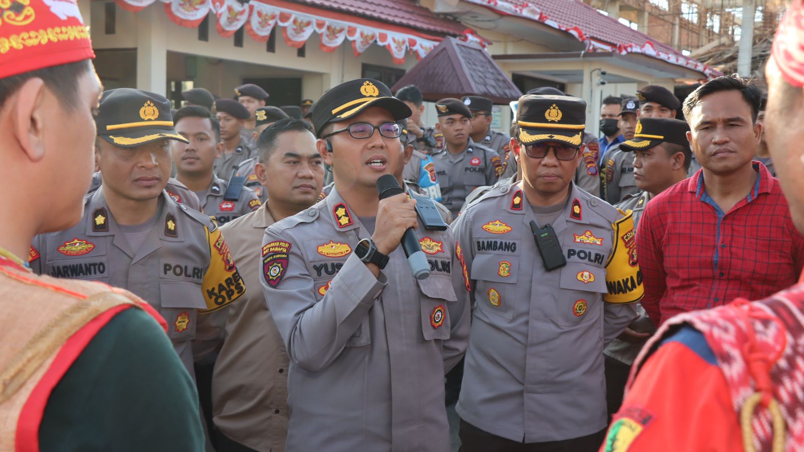 Kapolres Bontang AKBP Yusep Dwi Prastiya saat menerima perwakilan aksi damai memberikan apresiasi kepada massa aksi damai yang berjalan tertib serta tidak mengganggu pengguna jalan yang melintas di depan Mako Polres.