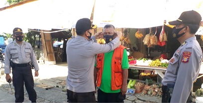 Hari ini, Kami juga membagikan masker berlogo TNI / Polri sebanyak 30 lembar kepada masyarakat yang ketahuan tidak menggunakan Makser sembari memberikan himbauan antara lain tentang Penerapan Protokol Kesehatan dalam rangka Pencegahan Penyebaran Covid 19.