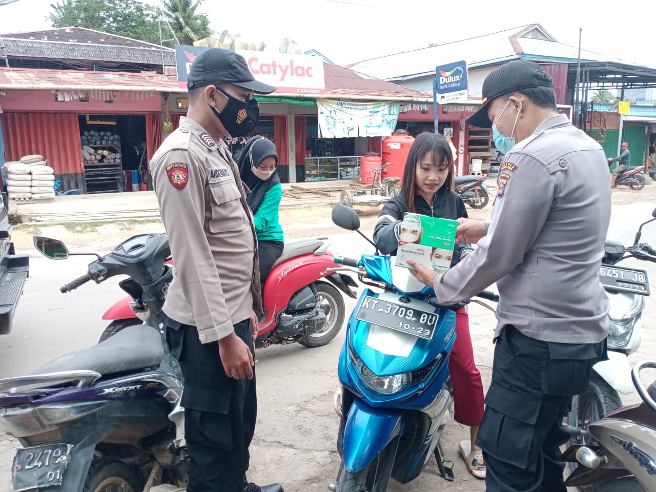 “Sambil memantau stuasi kamtibmas kita bagikan masker bagi warga tujuannya mendukung pencegahan penyebaran Covid-19, ucapnya “