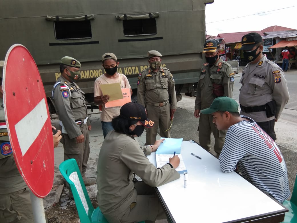 Di lokasi, petugas memeriksa setiap pengendara sepeda motor maupun mobil yang melintas. Bagi yang tidak memakai masker langsung ditindak sesuai sanksi yang diatur dalam Perwali Kota Bontang No 21 Th 2020.