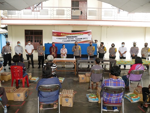 “Ini wujud jalinan silaturahmi dan kerjasama antara Polri dan Masyarakat dalam rangka perayaan Natal 2020 dan Tahun baru 2021 dengan penuh kasih dan suka cita, kiranya bantuan ini bermanfaat dan dapat meringankan beban masyarakat dalam merayakan Natal dan Tahun baru disaat Pandemi Covid-19”, kata Kapolres.
