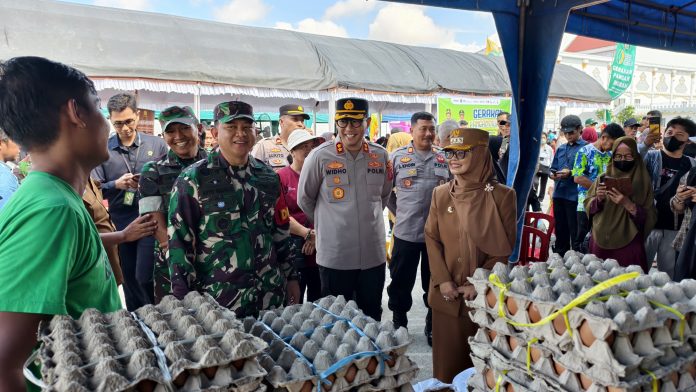 Bontang – Kapolres Bontang, AKBP Widho Anriano, S.I.K, M.Si menghadiri kegiatan Gerakan Pangan Murah (GPM) yang diselenggarakan oleh Pemerintah Kota Bontang di Stadion Bessa Berinta Lang-Lang, Kelurahan Api-Api, Kecamatan Bontang Utara, pada Selasa, 29 Juli 2024. Kegiatan ini bertujuan untuk stabilisasi pasokan dan harga pangan di Kota Bontang.