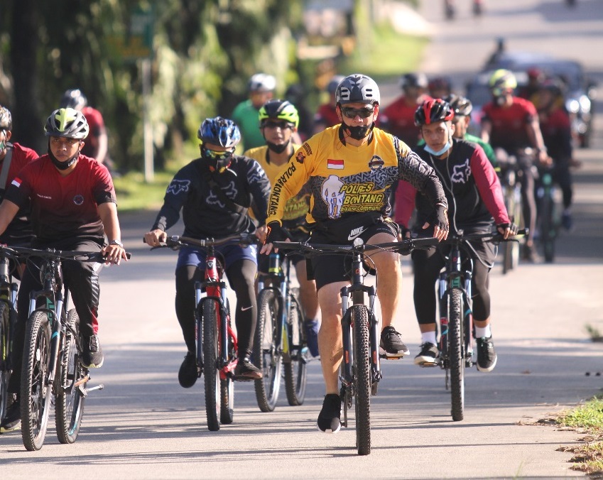 Dipimpin Kapolres Bontang AKBP Hanifa Martunas Siringoringo, SIK. MH bersama Dandim 0908 Bontang, Danden Arhanud 002 Bontang, Dan Sub Den POM TNI, Gowes juga diikuti puluhan anggota baik TNI dan Polri yang ada di Kota Bontang dengan melaksanakan olahraga bersepeda bersama sebagai sarana kendaraan yang bebas polusi udara.