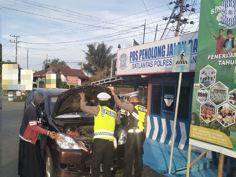 Pengendara Mobil yang melintas di sekitar Posko Penolong Jalan Raya mendapat respon cepat dari petugas Posko pada Rabu (3/1/2024) pagi, petugas Posko Penolong Jalan Raya Polres Bontang membantu seorang pengendara yang mobilnya mogok.