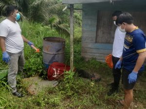 “Saat mengambil air dalam drum saksi menengok dan terkejut melihat ada orang yang terbaring ditanah dengan leher yang terikat tali warna biru,” ujar Iptu Gatot.