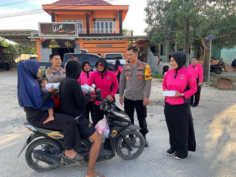 Pembagian Ta’jil dilaksanakan di Jl.Simpang tiga Desa Sebuntal Kec. Marangkayu oleh Waka Polres Bontang dan jajaran Polsek Marang kayu berikut Bhayangkari Ranting Marangkayu.