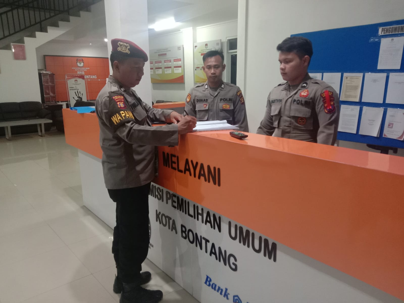 Polres Bontang – Piket Pawas Polres Bontang Aipda Arief melaksanakan kontrol terhadap petugas Polri yang melaksanakan pengamanan di kantor KPU Kota Bontang, kamis (04/4/2024) pukul 01.510 wita.