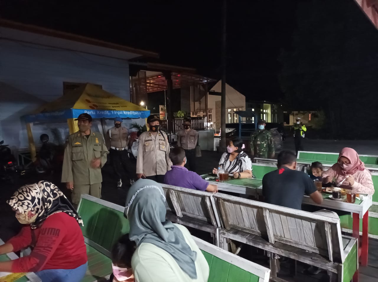 Seperti tadi malam , Kamis 22 September 2021 Jam 20.30 Wita . sebanyak 14 personil aparat gabungan yang di pimpin Kasiwas Polres Bontang Iptu Puji Handoko dan Ipda Wahyudi Bambang selaku padal melaksanakan patroli gabungan pengawasan penerapan protokol kesehatan PPKM level 3 ,di sejumblah titik tempat keramian yang berpotensi menjadi tempat berkerumun seperti Cafe – Cafe di sepanjang Jl. R. Soprapto , Cafe di Jl. DI. Panjaitan serta Cafe dan angkringan di sepanjang obyek Wisata Bontang Kuala .