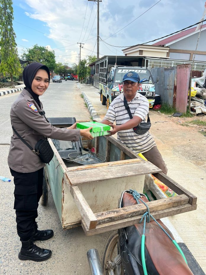 ”Hari ini kami berinisiatif untuk membagi makanan siap saji secara door to door kepada warga sekitar JL HM Ardan dan Imam Bonjol” Kata Iptu Bejo Hariyanto