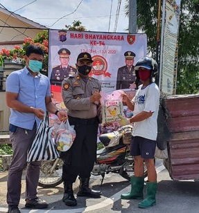 Pembagikan paket sembako kepada Pemulung ini merupakan rangkaian Peringatan Hari Bhayangkara ke-74. Juga merupakan kepedulian Polri kepada warga kurang mampu dan terdampak Covid-19.