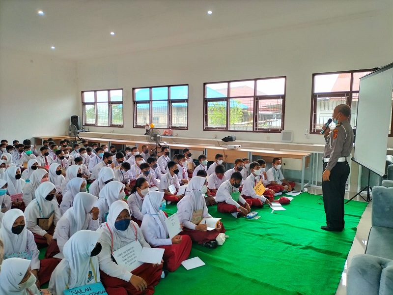 Bontang – Satuan Lalu Lintas Polres Bontang menggelar program Police Goes To School dalam rangka memberikan sosialisasi Kamseltibcar lantas di kalangan pelajar Rabu (13/7/2022)