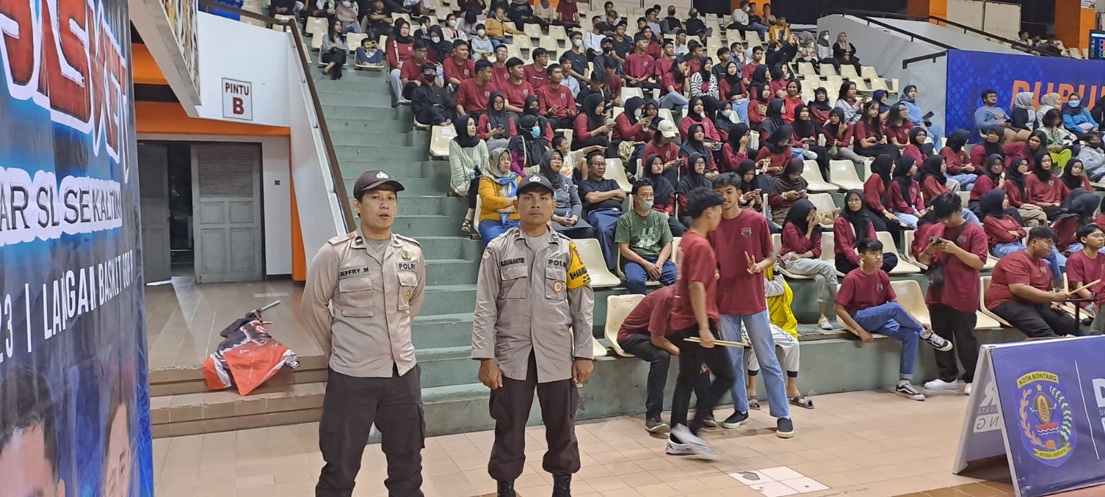 Polres Bontang, Personil Polres Bontang mengamankan pertandingan Pembukaan Turnamen Basket Antara Pelajar Se Kaltim di  Gor PKT Bontang Jalan Amanda PC VI Kelurahan Belimbing Kecamatan Bontang Barat Kota Bontang, Selasa ( 2/5/2023)