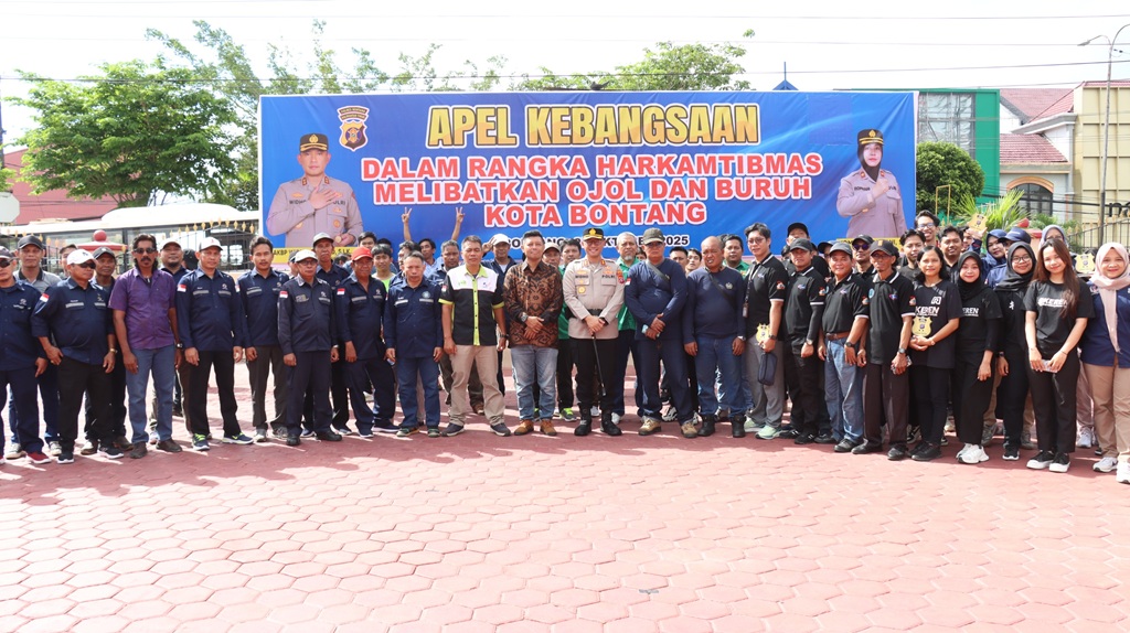 Polres Bontang menggelar Apel Kebangsaan bersama komunitas ojek online dan buruh di Lapangan Apel Mako Polres Bontang pada Sabtu, 25 Oktober 2025. Kegiatan ini dipimpin langsung oleh Kapolres Bontang, AKBP Widho Anriano, dan dihadiri oleh berbagai pejabat utama Polres Bontang serta perwakilan dari komunitas ojek online dan buruh.