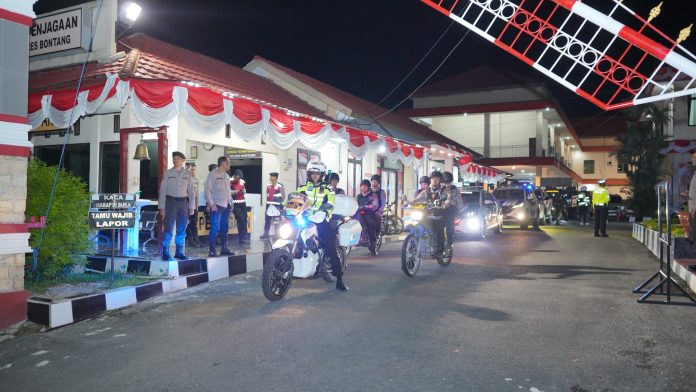 Polres Bontang menggelar apel siaga dan patroli gabungan bersama TNI-POLRI dan dinas instansi terkait dalam rangka cipta siskamtibmas di wilayah hukum Polres Bontang pada hari Minggu, 31 Agustus 2025, pukul 19.40 WITA, di Mako Polres Bontang.