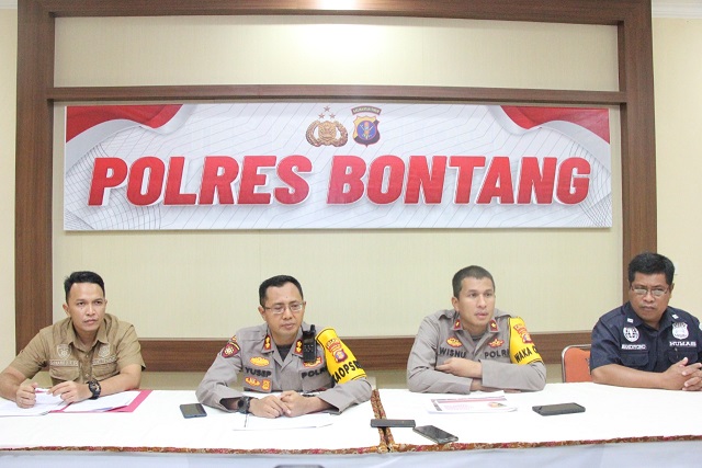 Konferensi Pers yang dilaksanakan di ruang rupatama lantai dasar Polres Bontang ini dipimpin langsung oleh kapolres Bontang AKBP Yusep Dwi Prastiya S.H.,S.I.K.M.H., didampingi WakaPolres Bontang Kompol Wisnu Dian Ristanto S.I.K.Kasi Humas Iptu Mandiyono S. Sos, Kanit Tipikor Mewakili Kasat Reskrim Ipda Danang R serta dihadiri awak media kota Bontang.