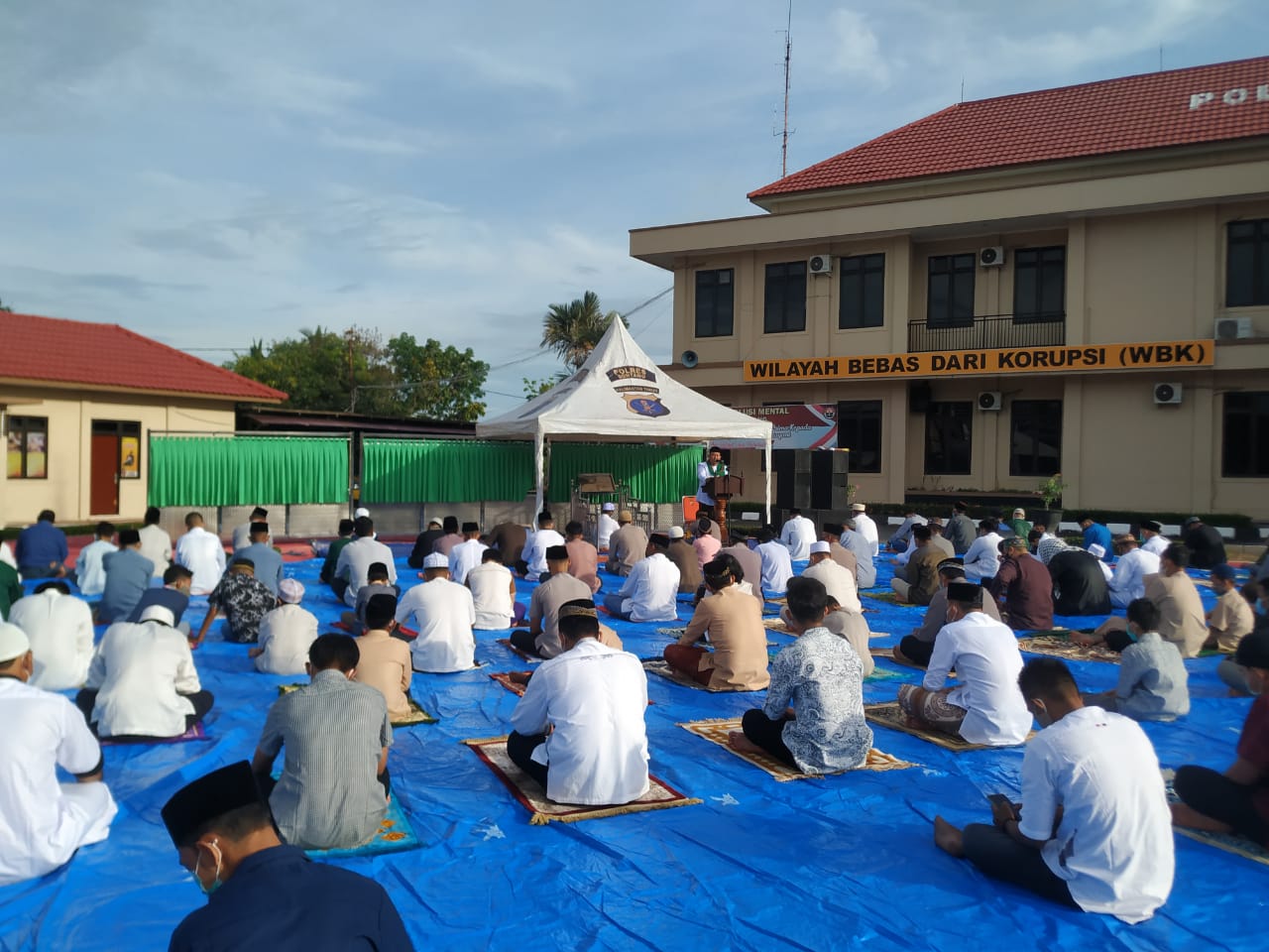 Sholat yang digelar di halaman Mako Polres Bontang ini dengan tetap mematuhi Protokol Kesehatan. Jamaah yang datang dilakukan pengecekan suhu tubuh, berwudhu dari rumah, membawa alas sholat atau sajadah dari rumah , memakai masker dan selalu menjaga jarak.