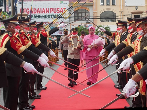 Usai Pengalungan bunga dan penyerahan buket bunga dilanjutkan dengan acara tepung tawar, Laporan situasi, Jajar kehormatan, Pedang pora dan ucapan selamat dari PJU Polres Bontang.