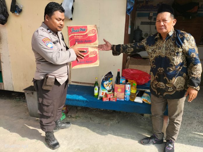 Kapolres Bontang melalui Kapolsek Bontang Utara Iptu Lukito menyerahkan bansos kepada Bp Bahtiar Effendi sebagai penerima manfaat