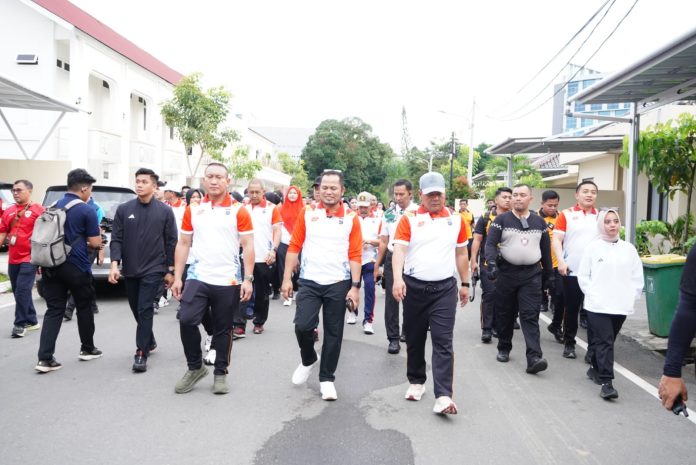 Tribratanews.kaltim.polri.go.id, Balikpapan – Dalam rangka puncak peringatan Hari Bhayangkara ke-79, Polda Kalimantan Timur menggelar kegiatan jalan santai yang berlangsung meriah di Lapangan M. Jasin, Mako Sat Brimob Polda Kaltim, Kawasan Stal Kuda, Balikpapan, Sabtu (05/07/25). Kegiatan ini dihadiri langsung oleh Kapolda Kaltim Irjen Pol Endar Priantoro, S.H., S.I.K., C.F.E., M.H., didampingi Wakapolda, para Pejabat Utama Polda Kaltim, Gubernur Kalimantan Timur, Pangdam VI/Mulawarman, Forkopimda Provinsi Kaltim, pengurus Bhayangkari Daerah Kaltim, serta seluruh keluarga besar Polda Kaltim.
