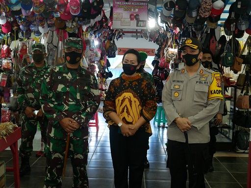 Dengan didampingi Sekretaris Disperindagkop Kota Bontang Rita Atin, S.Sos, MM, Kapolres Bontang dan Dandim 0908 Bontang dan beberapa Perwira TNI-POLRI memberikan teguran kepada masyarakat yang tidak menggunakan masker.