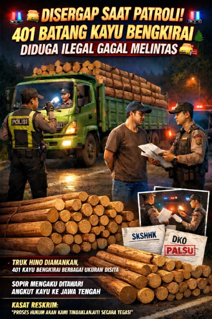 Pengungkapan berawal saat petugas melakukan patroli dan mencurigai satu unit truk Hino warna hijau yang melintas dan diduga membawa muatan kayu. Saat dilakukan pemeriksaan, ditemukan muatan sebanyak 401 batang kayu bengkirai berbagai ukuran dalam bak truk Hino Nopol DC 8952 XJ. Dokumen yang ditunjukkan sopir berupa SKSHHK dan DKO yang diduga tidak sesuai ketentuan.